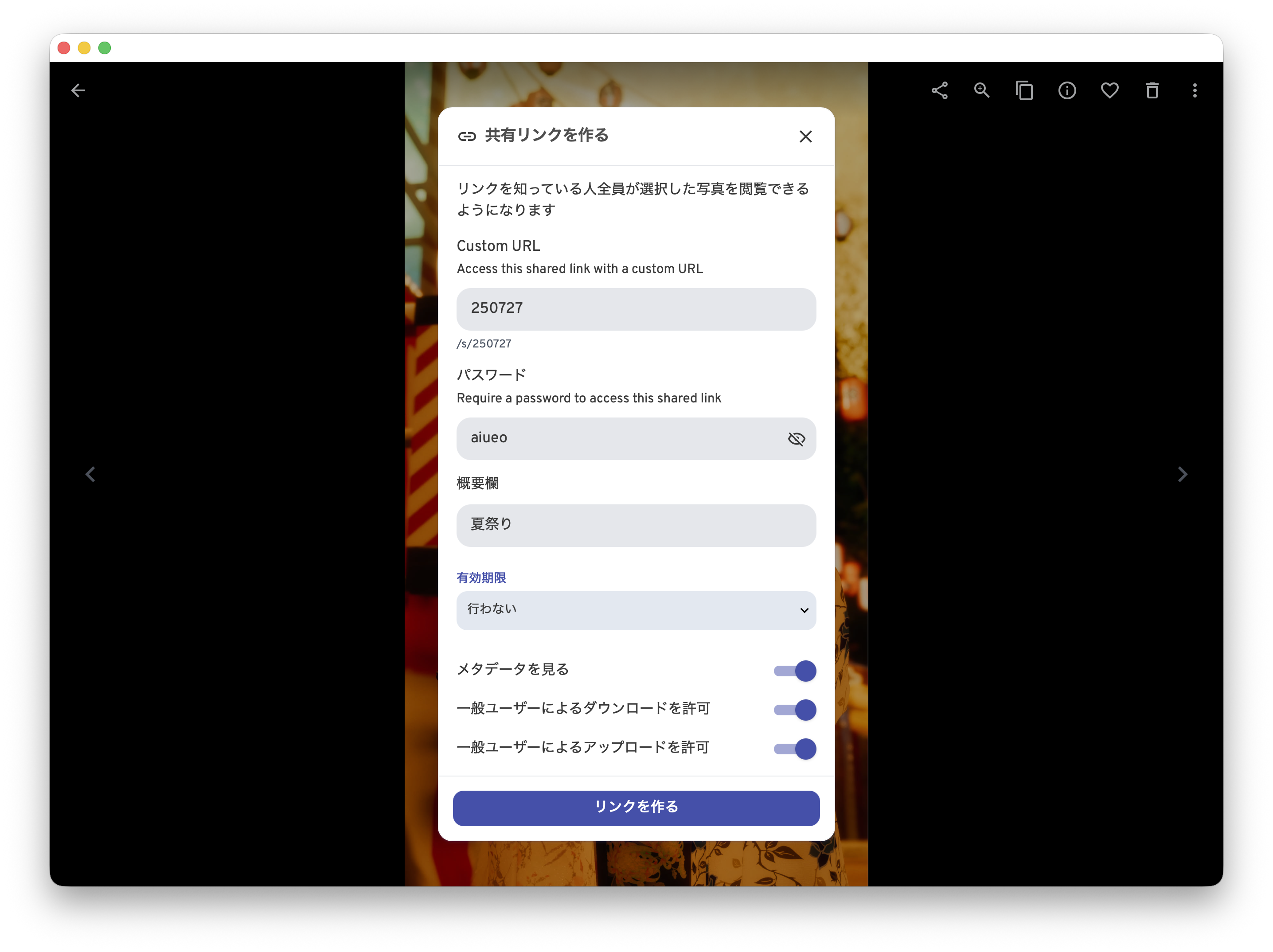 写真を共有リンクで共有できます。