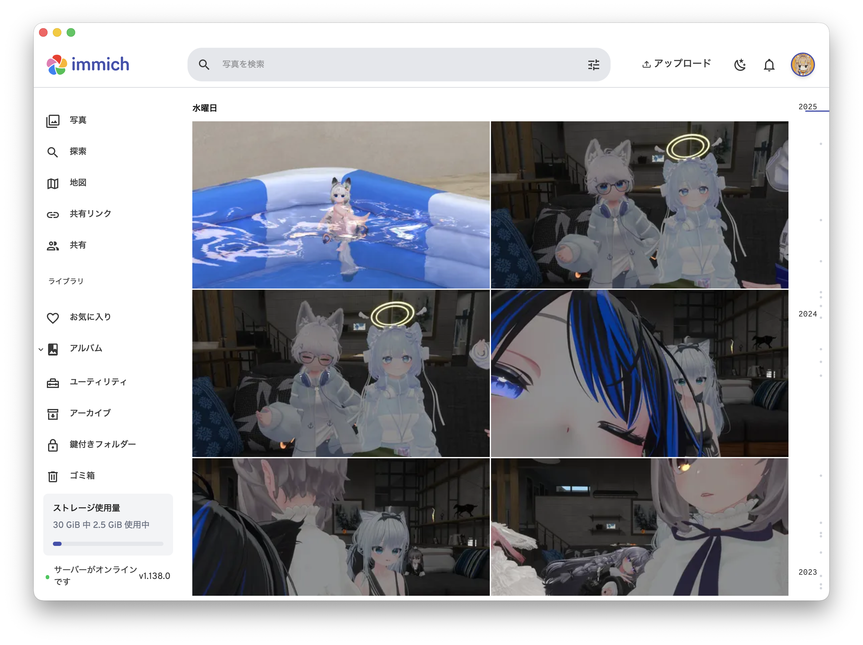 画像の撮影日時に基づいてタイムライン表示されます。